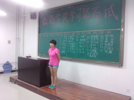 为给2013级新生提供一个锻炼自我,展示自我,提升自我的平台,同时也为了进一步促进学生会工作,巩固和完善学生会的工作机制,9月22日下午,公路学院学生会在1A308进行了招新面试活动。