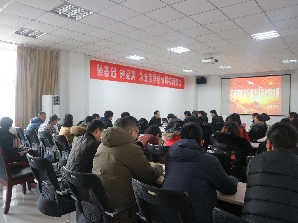 1月2日,学院党委副书记、院长李强为公路学院教工党支部全体党员上了一堂党风廉政教育专题党课;公路学院全体教工党员参加,公路学院党总支书记袁超主持。