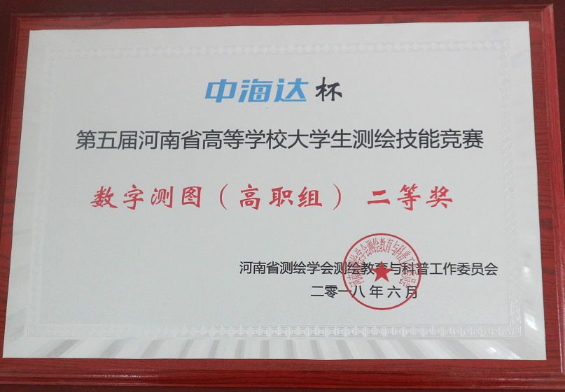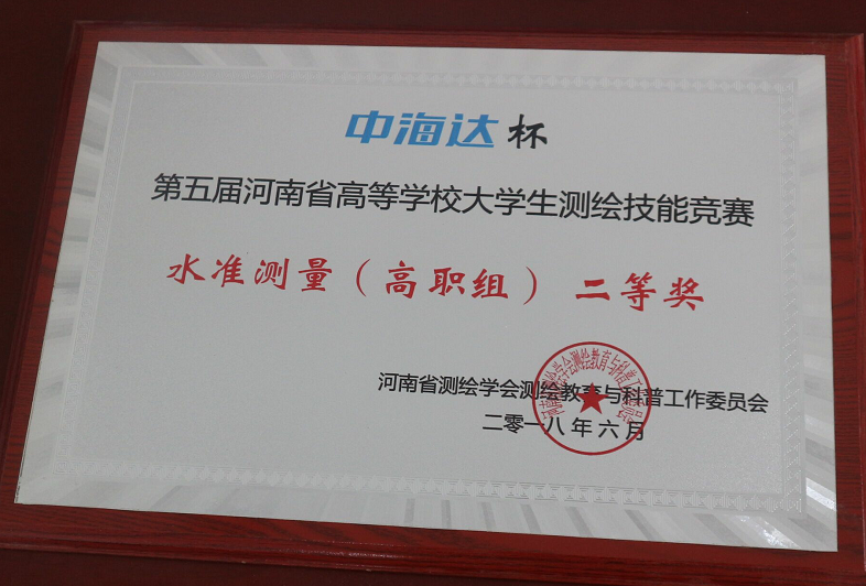 近日, “中海达杯”第五届河南省高等学校大学生测绘技能大赛在南阳师范学院激烈开展,我院代表队力挫群英,赢得了高职组团体二等奖,二等水准测量、1:500数字地形图测绘等单项二等奖2项。