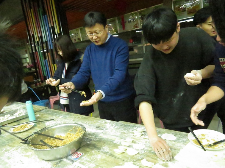 活动中,所有老师和同学们一起和面儿、擀面皮儿、包饺子,场景温馨、暖意融融,其中游院长亲手包了50个饺子;最后,游院长与同学们分享了冬至传统节日的起源、发展、意义和饮食;并祝福同学们冬至节日快乐,希望同学们在今后的大学生活中天天开心、学习进步、学有所成。