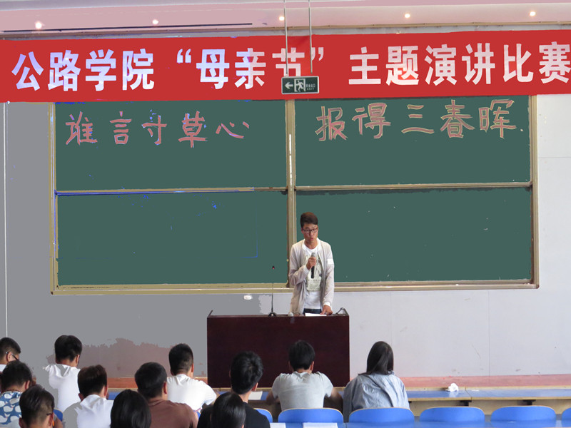 5月11日下午3点,公路学院组织部举办了以“感恩母亲”为主题的演讲比赛,比赛在公路学院1B301教室举行。公路学院学生会的部长们担任评委,本次比赛旨在引导大学生对母爱的感悟,学会感恩。
