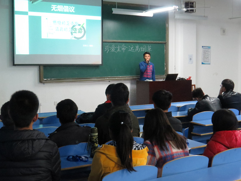 下午3点30分,无烟倡议讲座在公路学院1B305教室举行。宣传部部长杨闯用生动形象的语言和图片,讲解了吸烟对于青少年的危害,还教授了同学们戒烟的一些小技巧。最后我院学管办王帆老师告诉大家,这是每个同学义不容辞的责任,希望大家切实做到。