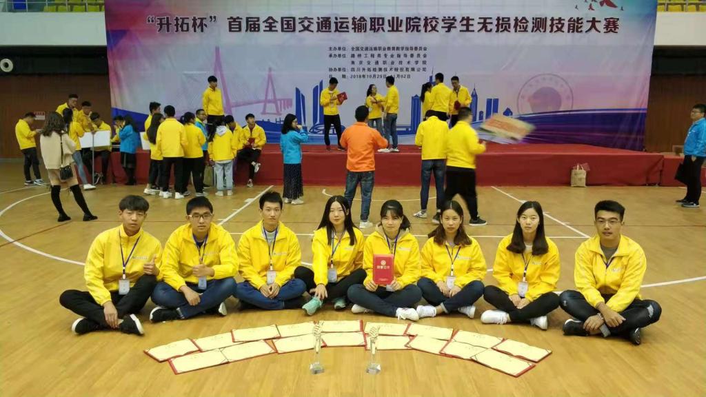 10月29日-11月2日,我院公路学院代表队赴南京交通职业技术学院参加“升拓杯”首届全国交通运输职业院校学生无损检测技能大赛;赢得了团体二等奖1项、三等奖1项;理论竞赛一等奖1项,三等奖 7项;混凝土结构缺陷测定一等奖1项,三等奖1项;钢筋间距及保护层厚度测定一等奖1项,三等奖2项,锚杆长度测定三等奖2项的优异成绩。