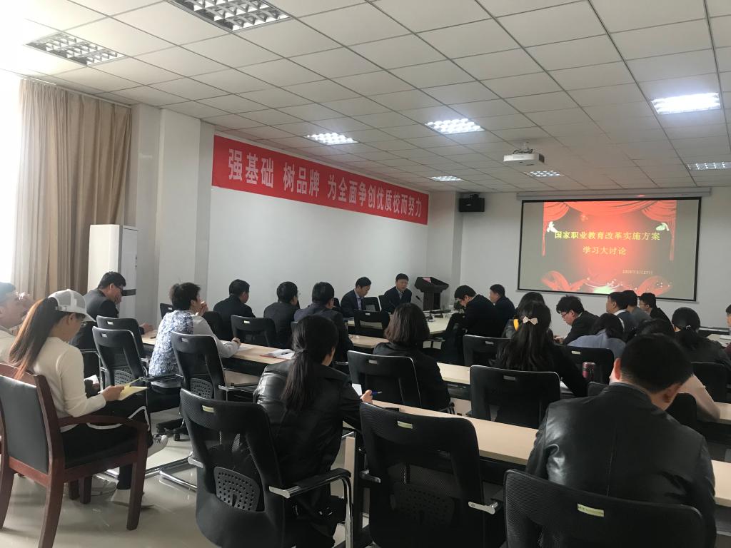 4月3日下午,公路学院在学校新校区再次深入学习讨论《国家职业教育改革实施方案》(以下简称《方案》),公路学院全体教师参加会议,会议由公路学院院长游江涛主持。