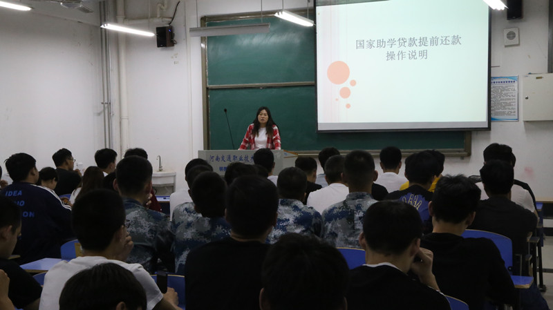 为响应学校号召,贯彻落实高校资助政策,做好精准资助,解读国家和学校的资助政策。公路学院于5月29日晚组织全体贷款学生在1A301教室进行了“两节课”之助学贷款实习生诚信还贷教育活动。该活动以课堂教学的形式对学生进行诚信还款教育,由安利娟老师担任主讲。