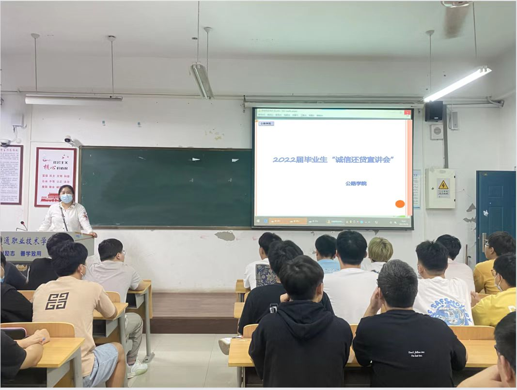 为进一步宣传诚实守信事迹,倡导契约精神,促使学生树立诚信观念、增强法律意识。5月10日晚,公路学院组织2022届贷款毕业生在公路学院1A301教室开展了“诚信还贷宣讲会”活动。