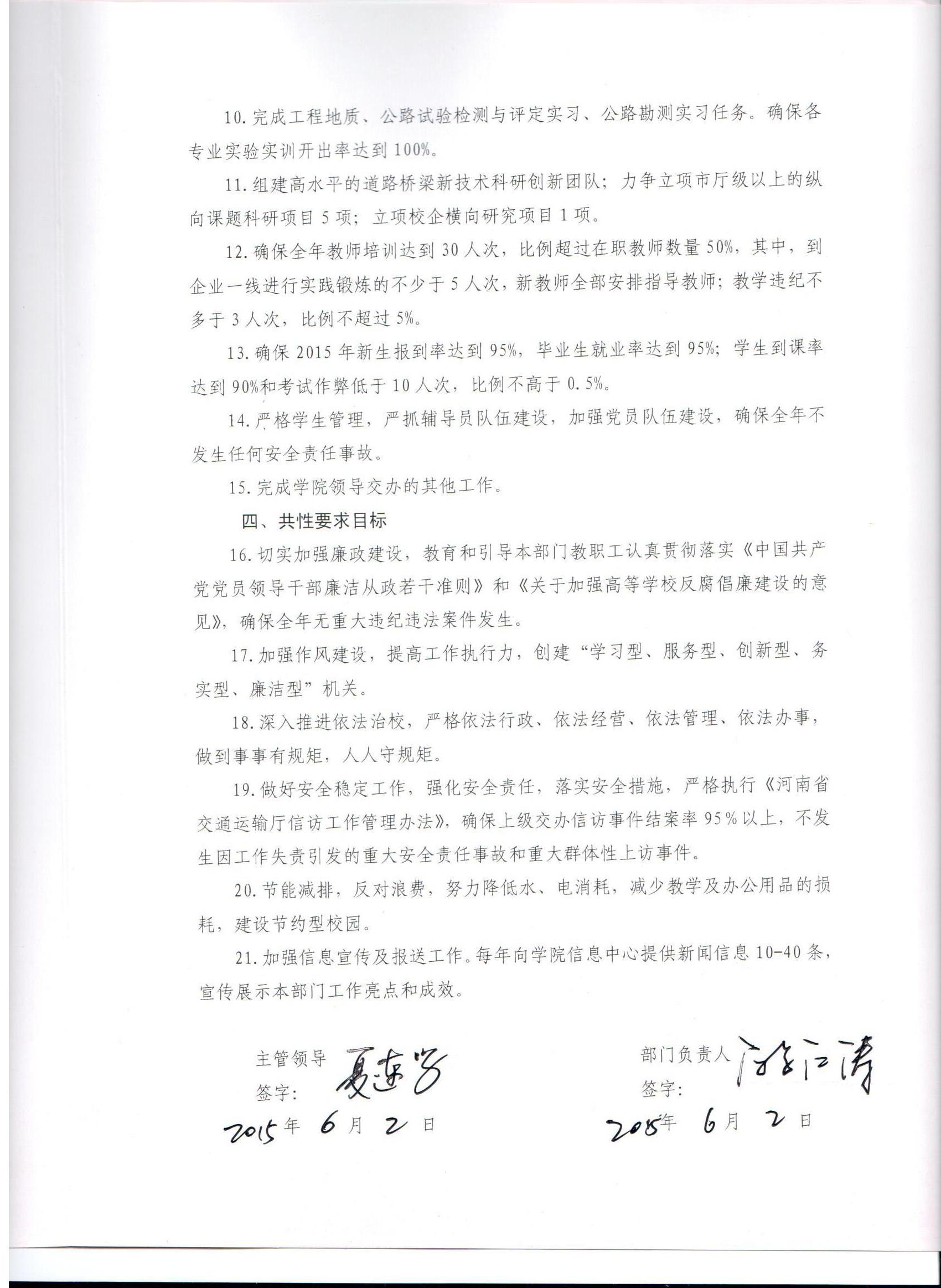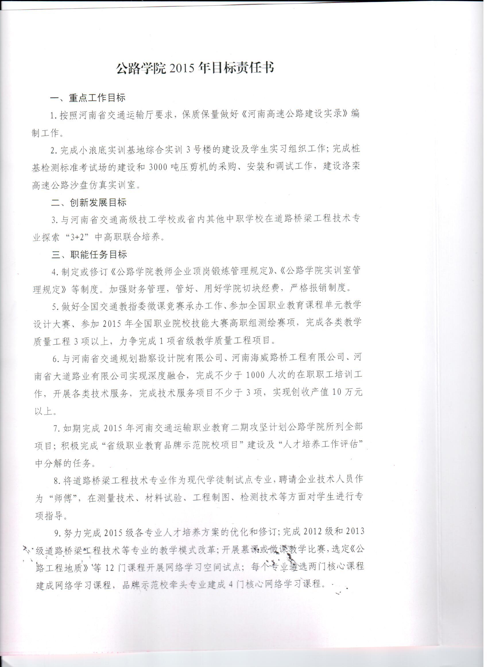公路学院2015年目标责任书